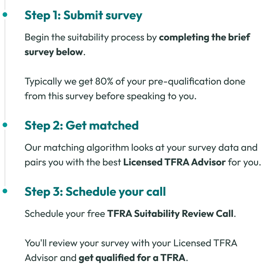Your Licensed TFRA Advisor will be the first to tell you that a TFRA will not work for you.